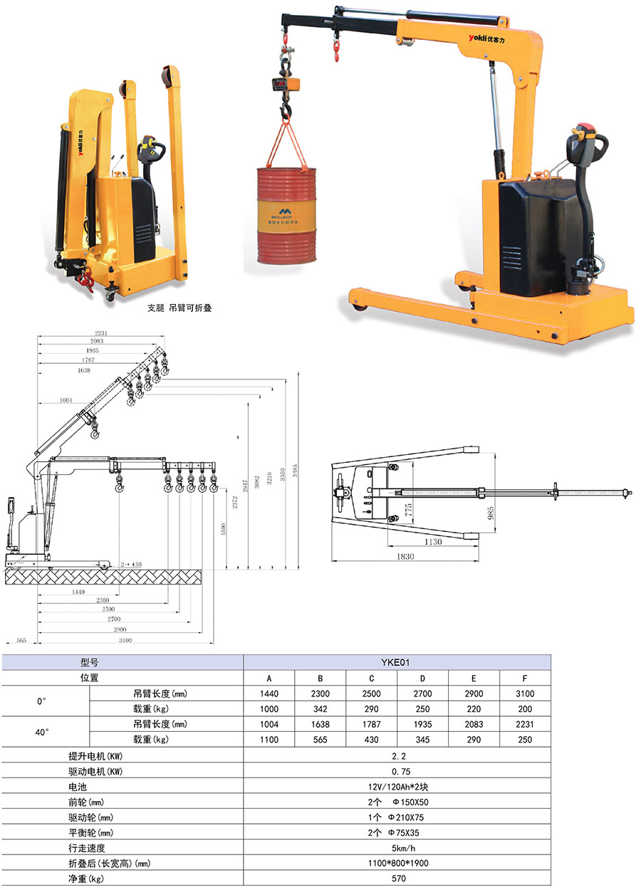 ● 注意:吊臂越長對應載荷越小,請注意對應載重,確保安全。