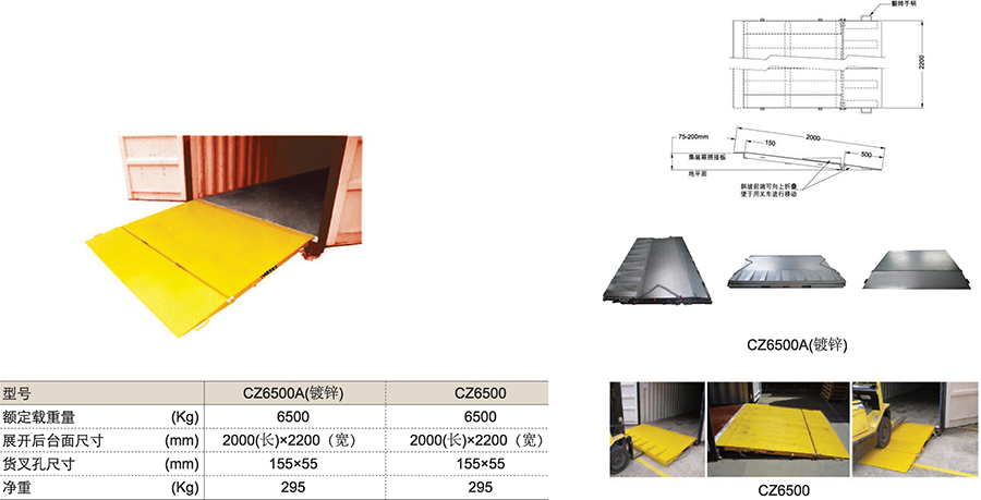 ● 坡道平臺帶有貨叉孔,斜坡部分可以折疊,便于運輸。