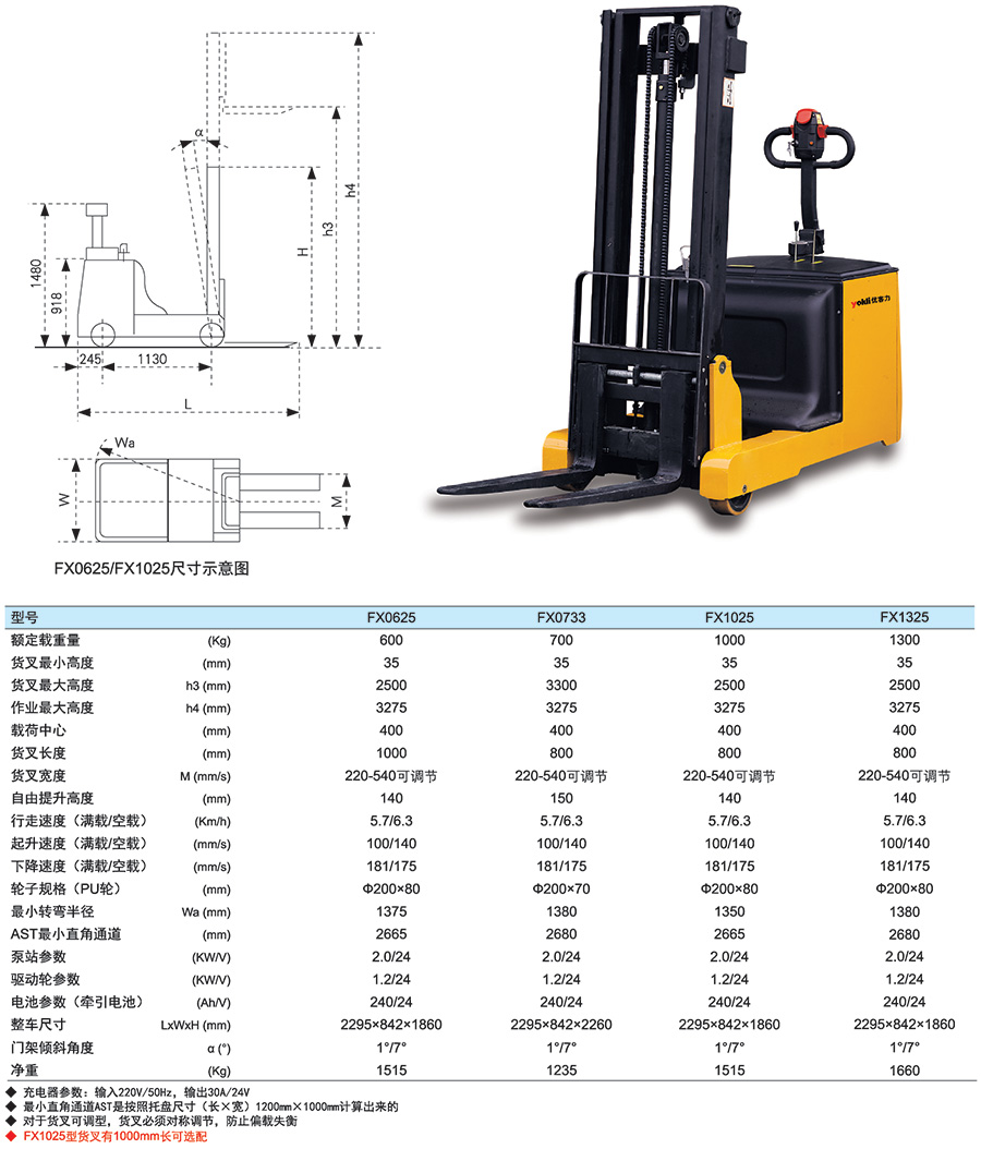 帶電子轉(zhuǎn)式三級門架全電動堆高車