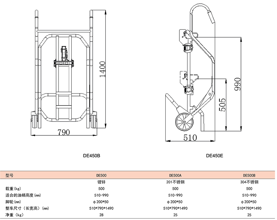 DE型機械式油桶搬運車