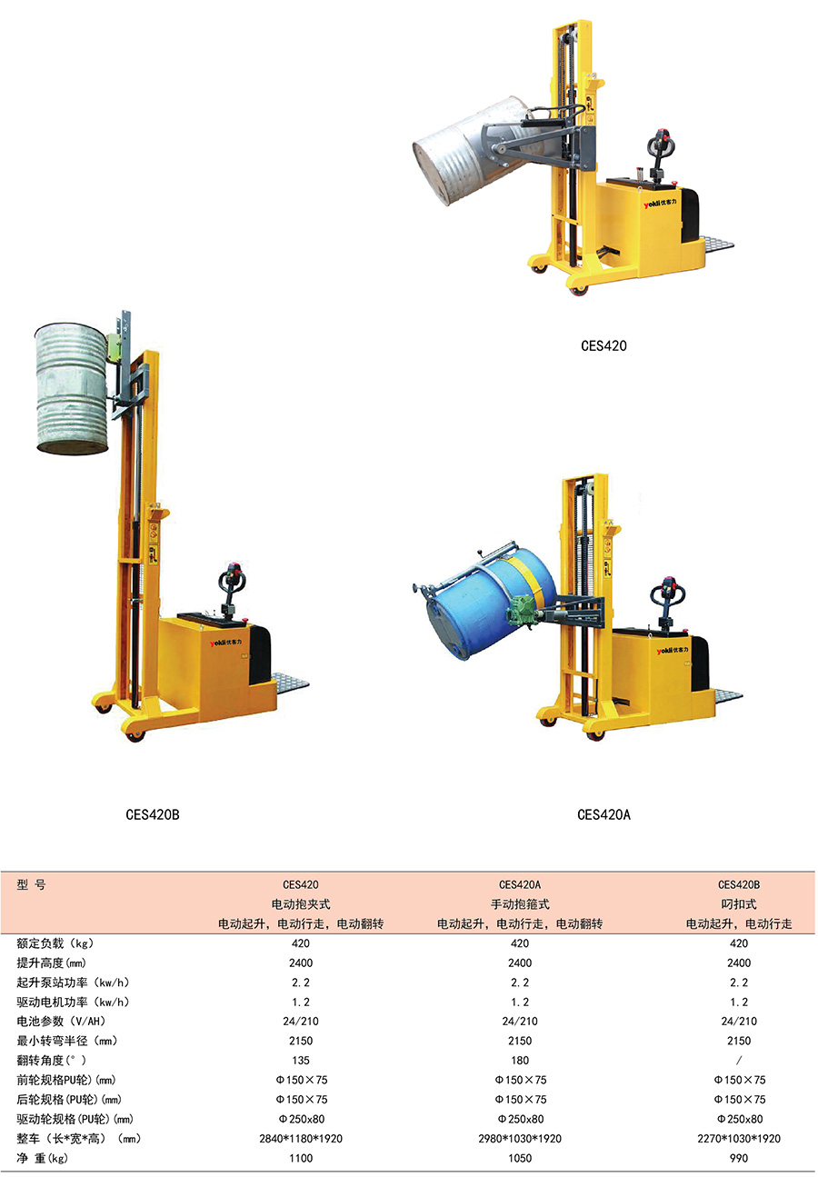 平衡重式全電動油桶搬運車