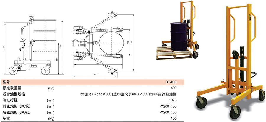 ● 適用于鋼制或部分塑料油桶的搬運和堆高。