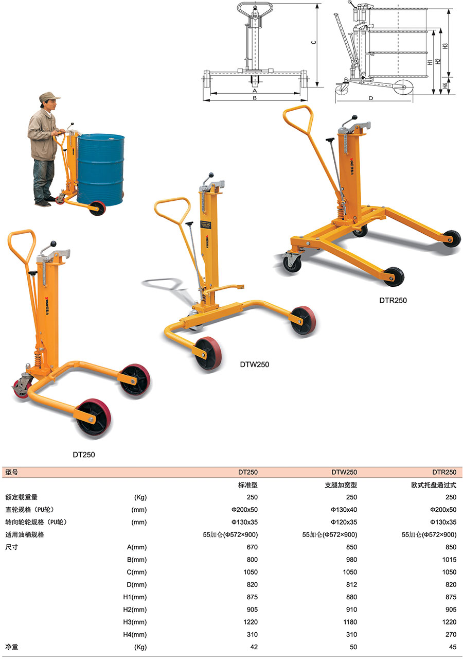 DT標準型液壓油桶搬運車