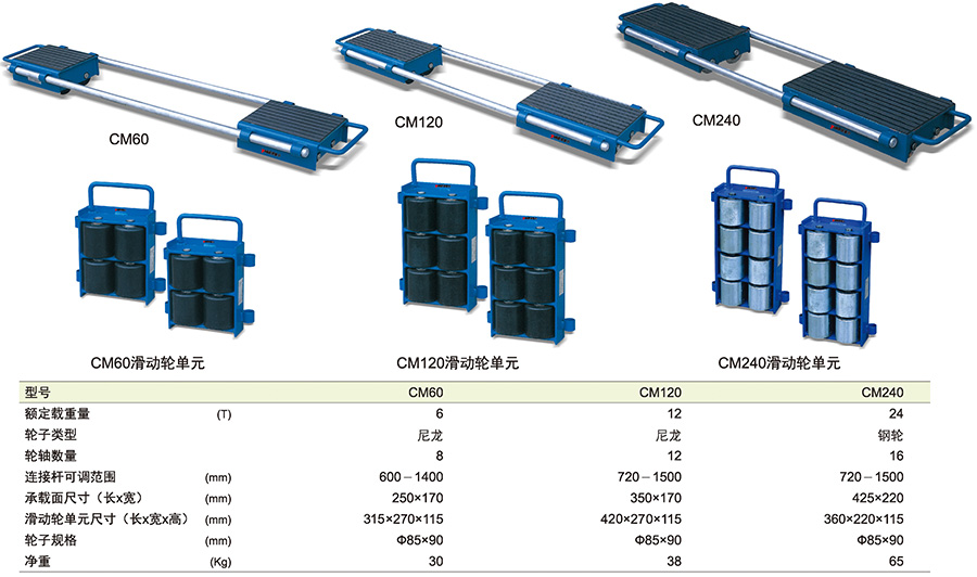 ● 每個CM系列滑動輪由兩個滑動輪單元及聯接桿組成。